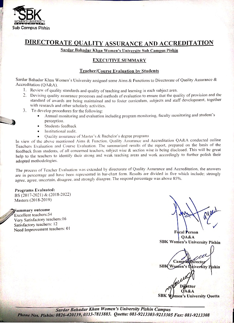 Directorate of Quality Assurance and Accreditation Menu Directorate of QA&A Home Quality Assurance Policy Institutional Quality Circle Activity Calendar QA&A Organizational Chart Focal Persons Detail Downloads Surveys Forms Activities linked Documents Executive Summaries